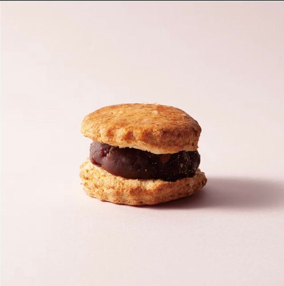 全粒粉と天然塩を使用したプチプチとした食感のスコーンに粒あんとバターを挟みました。