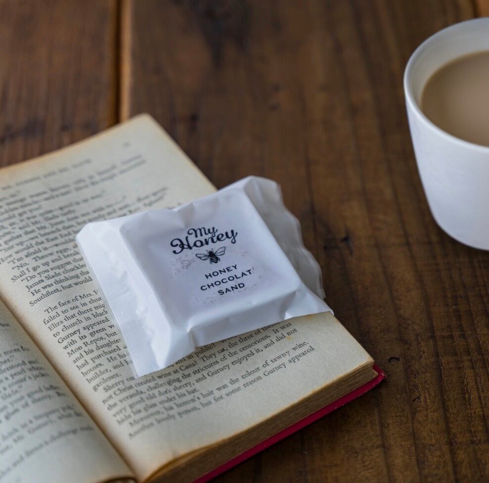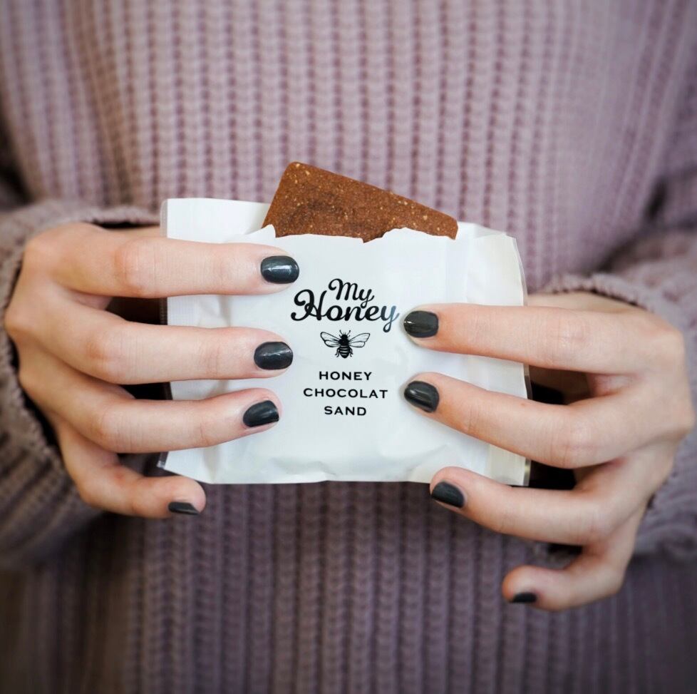 チョコレートに含まれるカカオは、言わずと知れた健康食品。でも、砂糖や乳製品などが含まれたチョコレートを沢山食べるということは、同時に沢山の砂糖を食べているということ。砂糖は「エンプティカロリー」とも呼ばれ、USDA(アメリカ合衆国農務省)は「少量のエンプティカロリーは良いが、殆どの方は健康を害する量を摂取している」と助言しています。そこでハニーショコラサンドのチョコレートは、白砂糖をいっさい使わず生はちみつとカカオのみで完成させました。