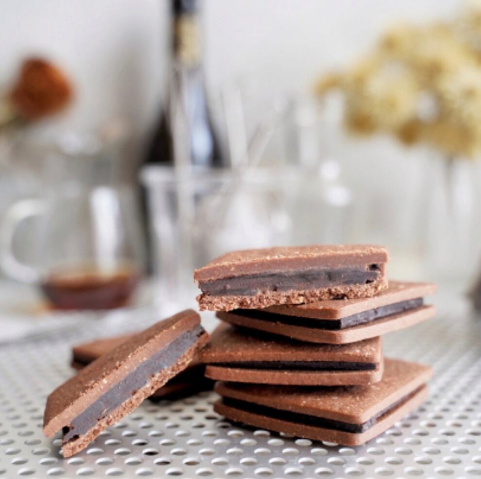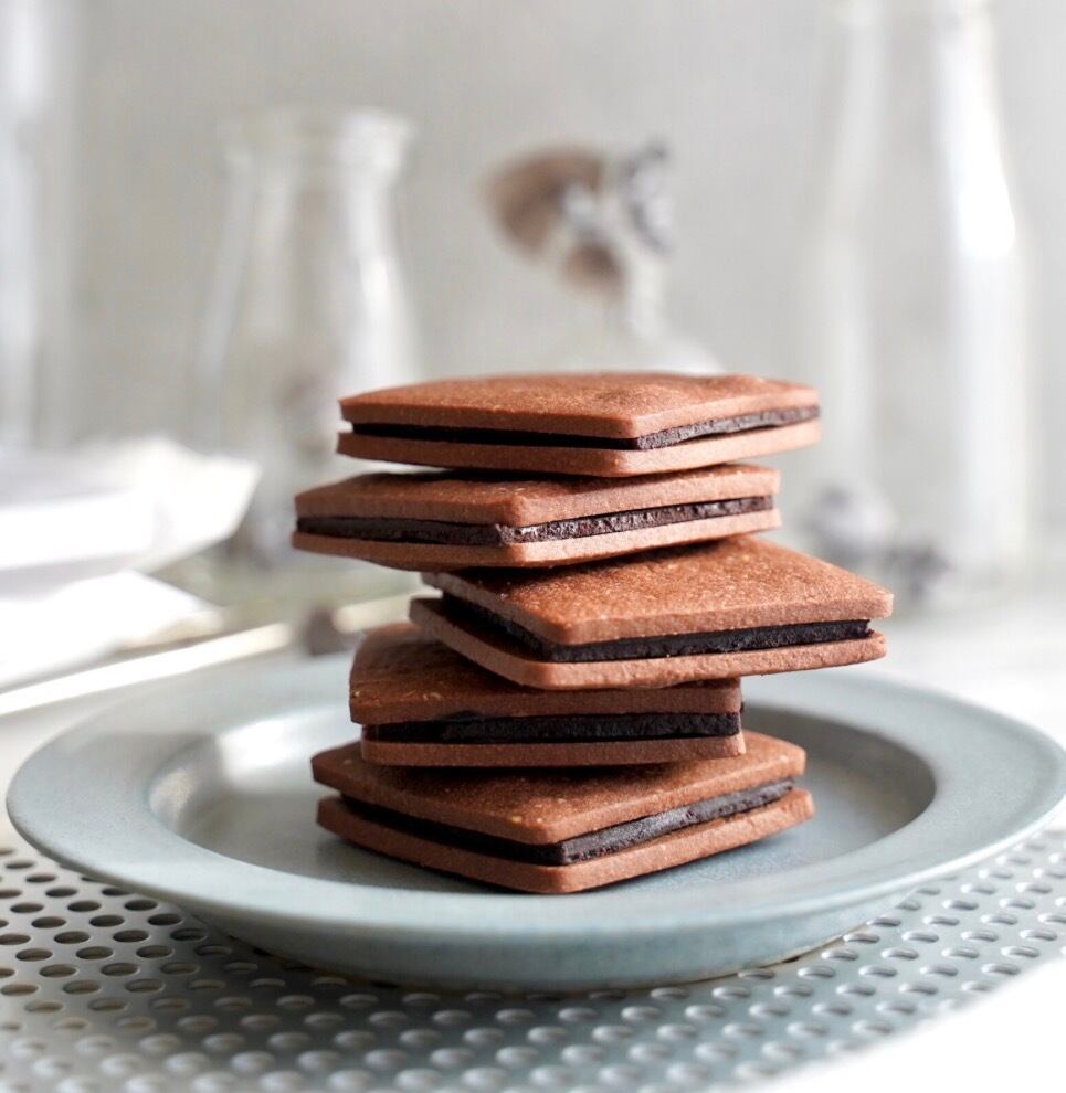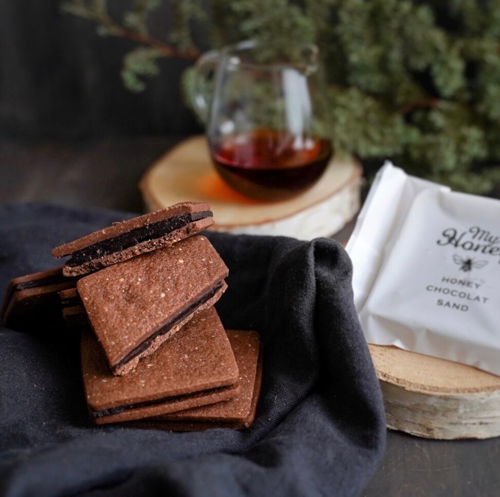 甘さは低GIの生はちみつだけ。1枚ずつ手作りで仕上げた罪悪感のないショコラサンドです。